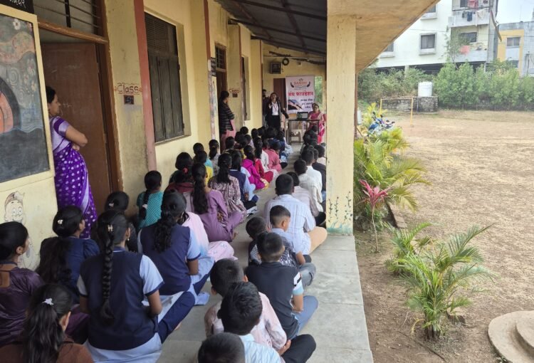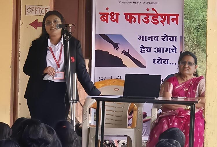 Tanvi Patil , student of symbiosis Law school, Nagpur , as a part of her internship at “Bandh foundation”, Kolhapur ,visited Sahyagiri educational institutes, new English School, Agashivnagar Nagar, Malkapur , Karad, on the advice of Bandh foundation and delivered a lecture to the school students on Kindness and good habits.